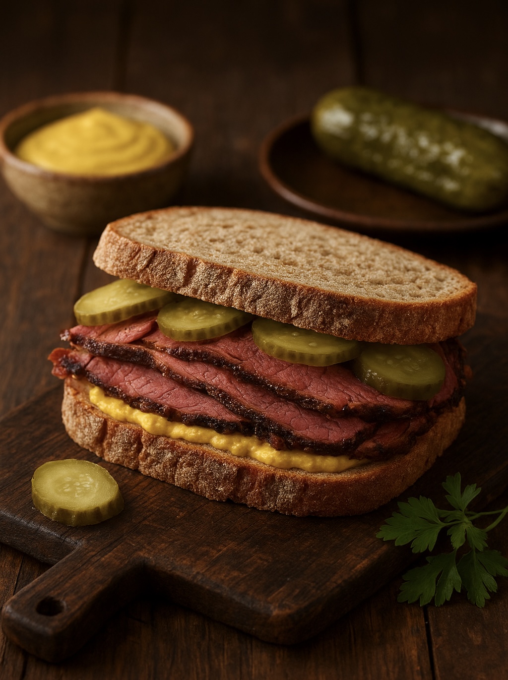 Ursprünglich stammt es aus der jüdisch-rumänischen Küche und wurde über Einwanderer im 19. Jahrhundert nach New York gebracht – wo es heute als Klassiker des New York Delis gilt (berühmt: Pastrami on Rye – Pastrami-Sandwich auf Roggenbrot).