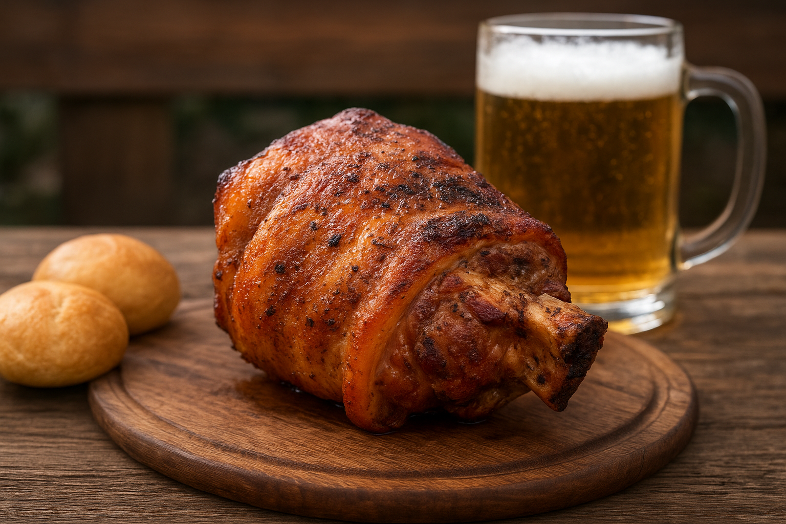 Wenn man einen Smoker hat, kann man die Stelze auch bei ca. 130 °C fĂŒr 3â4 Stunden rĂ€uchern (z. B. mit Buchenholz) und am Ende bei 220 °C knusprig ziehen lassen â das ergibt herrlich zartes Fleisch mit Rauchkruste.