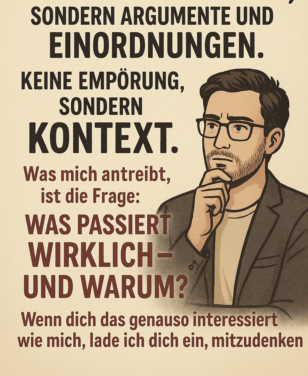 Ich schreibe hier, weil ich verstehen will – und weil ich glaube, dass Verstehen die Grundlage jeder informierten Debatte ist.